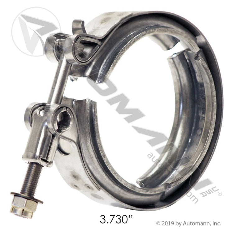 The Volvo EGR Tube V-Band Clamp (Automann Part # 561.29365-B) features a 3.65-inch nominal diameter specifically engineered for Volvo VN1 and VN2 EGR tube flange connections. Constructed from high-tensile stainless steel, this clamp offers superior durability and resistance to oxidation in high-heat environments. Note: To ensure a long service life and prevent bolt stripping, this unit uses a 5/16-inch bolt designed for a specific torque range of 170-200 in-lbs (do not use an impact gun).
